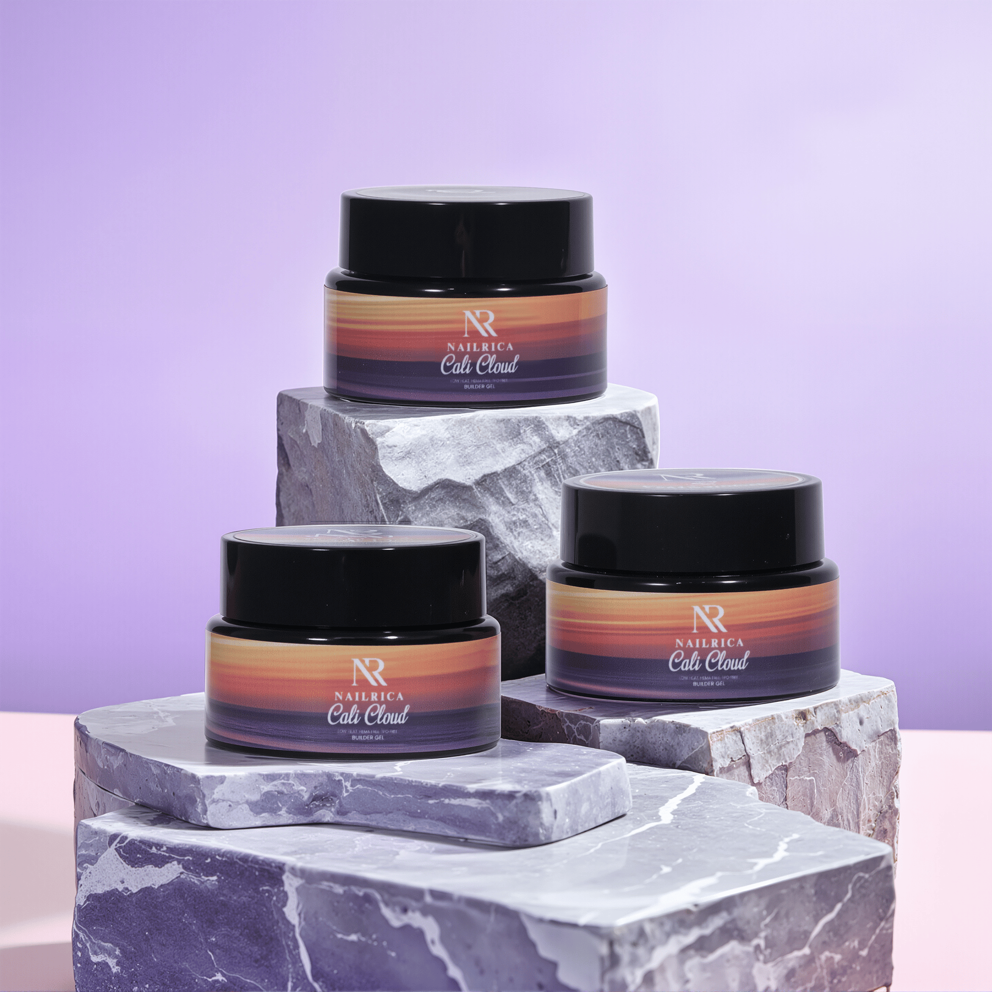 Elevate your nail game with the Cali-Cloud Builder Gel Collection from NAILRICA – a premium set of 12 highly pigmented builder gels in a jar, inspired by the soft, dreamy skies of California.