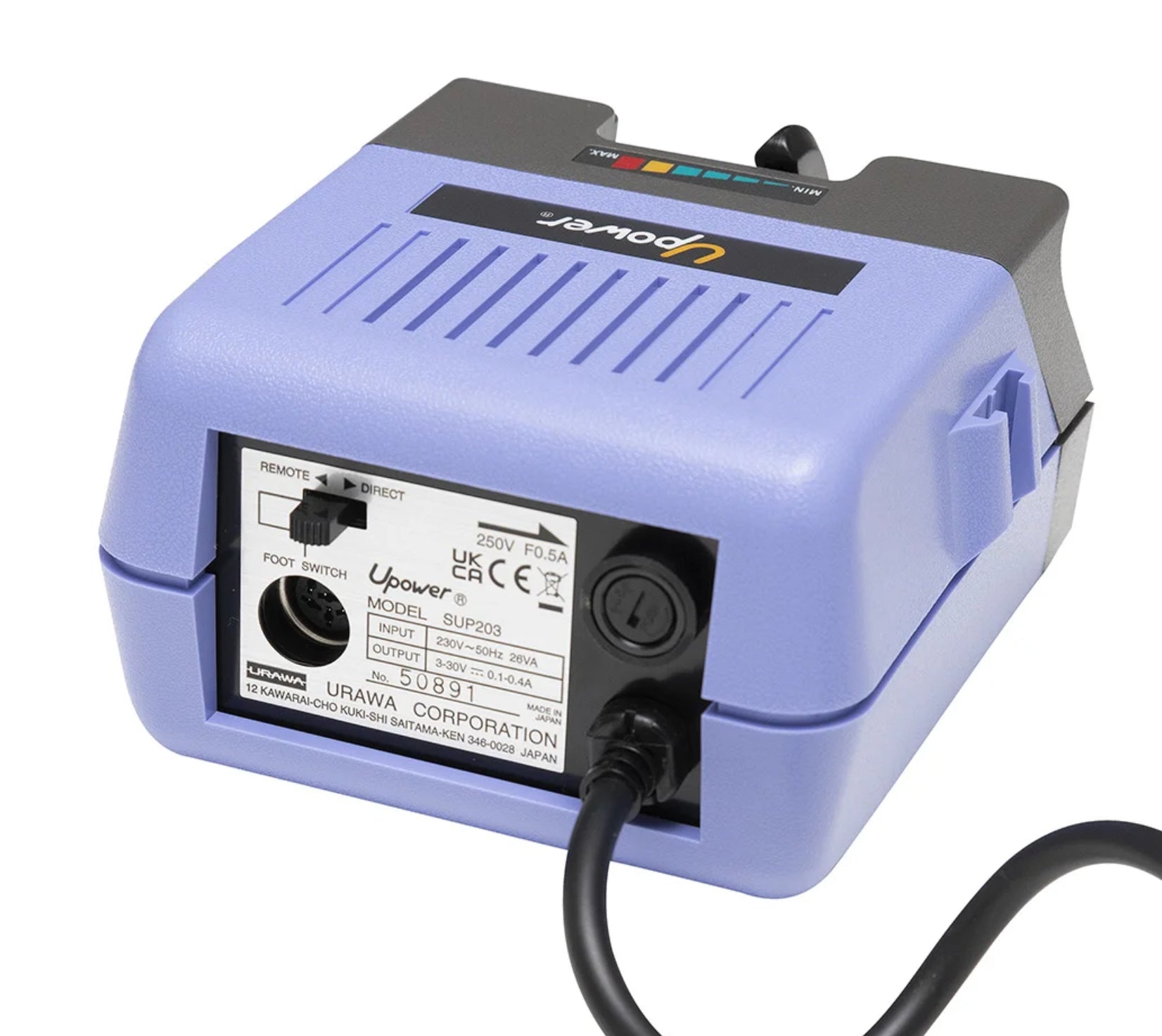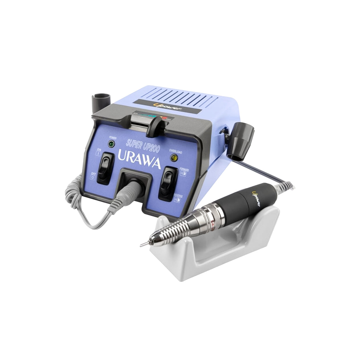 The Original UP-200. The first electric file manufactured specifically for the nail industry, the UP-200 continues to be the reliable electric nail file.The handpiece is armature-driven, made of stainless steel, and features a twist-lock chuck, making changing bits quick and easy.The control box allows nail technicians to choose between forward and reverse modes and has a variable sliding speed control that reaches 30,000 RPM.